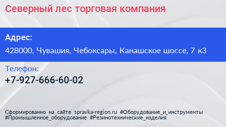 Северный лес, торговая компания по адресу 428000, Чувашия, Чебоксары, Канашское шоссе, 7 к3 в дальнейшем Организация, размещена в следующих категориях: