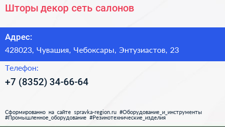 Шторы-декор, сеть салонов по адресу 428023, Чувашия, Чебоксары, Энтузиастов, 23 в дальнейшем Организация, размещена в следующих категориях: