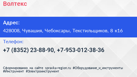 Волтекс по адресу 428008, Чувашия, Чебоксары, Текстильщиков, 8 к16 в дальнейшем Организация, размещена в следующих категориях: