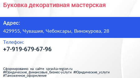 Буковка, декоративная мастерская по адресу 429955, Чувашия, Чебоксары, Винокурова, 28 в дальнейшем Организация, размещена в следующих категориях: