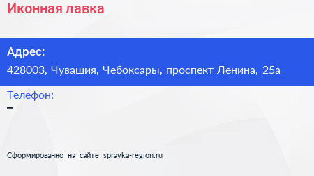 Иконная лавка по адресу 428003, Чувашия, Чебоксары, проспект Ленина, 25а в дальнейшем Организация, размещена в следующих категориях:
