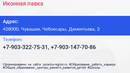 Иконная лавка по адресу 428000, Чувашия, Чебоксары, Дементьева, 2 в дальнейшем Организация, размещена в следующих категориях: