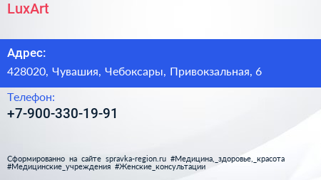 LuxArt по адресу 428020, Чувашия, Чебоксары, Привокзальная, 6 в дальнейшем Организация, размещена в следующих категориях: