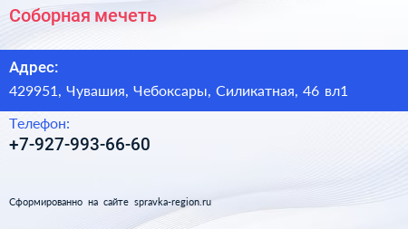 Соборная мечеть по адресу 429951, Чувашия, Чебоксары, Силикатная, 46 вл1 в дальнейшем Организация, размещена в следующих категориях: