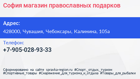 София, магазин православных подарков по адресу 428000, Чувашия, Чебоксары, Калинина, 105а в дальнейшем Организация, размещена в следующих категориях: