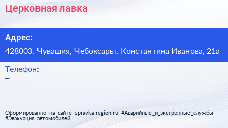 Церковная лавка по адресу 428003, Чувашия, Чебоксары, Константина Иванова, 21а в дальнейшем Организация, размещена в следующих категориях: