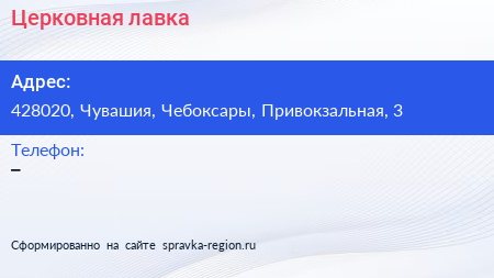 Церковная лавка по адресу 428020, Чувашия, Чебоксары, Привокзальная, 3 в дальнейшем Организация, размещена в следующих категориях: