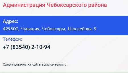 Администрация Чебоксарского района по адресу 429500, Чувашия, Чебоксары, Шоссейная, 9 в дальнейшем Организация, размещена в следующих категориях:
