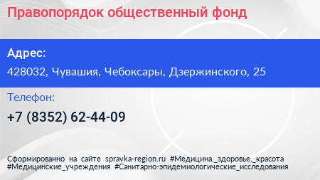 Правопорядок, общественный фонд по адресу 428032, Чувашия, Чебоксары, Дзержинского, 25 в дальнейшем Организация, размещена в следующих категориях:
