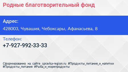 Родные, благотворительный фонд по адресу 428003, Чувашия, Чебоксары, Афанасьева, 8 в дальнейшем Организация, размещена в следующих категориях: