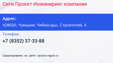 Сити Проект Инжиниринг, компания по адресу 428020, Чувашия, Чебоксары, Строителей, 6 в дальнейшем Организация, размещена в следующих категориях: