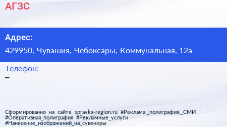АГЗС по адресу 429950, Чувашия, Чебоксары, Коммунальная, 12а в дальнейшем Организация, размещена в следующих категориях: