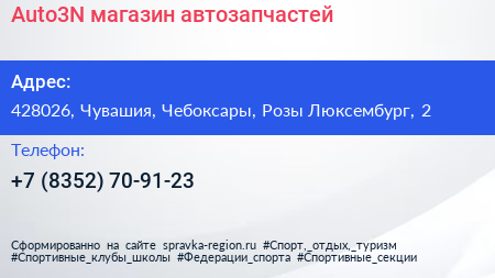 Auto3N, магазин автозапчастей по адресу 428026, Чувашия, Чебоксары, Розы Люксембург, 2 в дальнейшем Организация, размещена в следующих категориях: