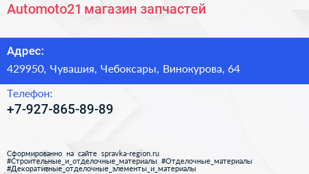 Automoto21, магазин запчастей по адресу 429950, Чувашия, Чебоксары, Винокурова, 64 в дальнейшем Организация, размещена в следующих категориях: