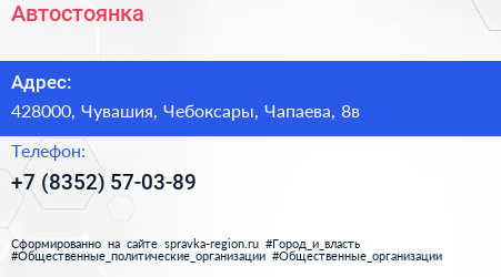 Автостоянка по адресу 428000, Чувашия, Чебоксары, Чапаева, 8в в дальнейшем Организация, размещена в следующих категориях: