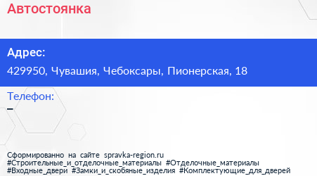 Автостоянка по адресу 429950, Чувашия, Чебоксары, Пионерская, 18 в дальнейшем Организация, размещена в следующих категориях: