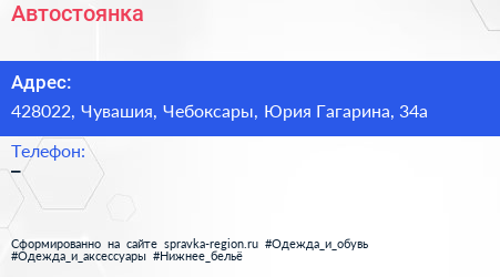 Автостоянка по адресу 428022, Чувашия, Чебоксары, Юрия Гагарина, 34а в дальнейшем Организация, размещена в следующих категориях: