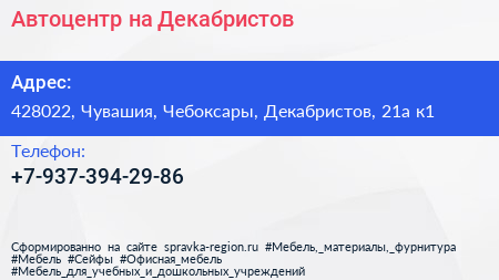 Автоцентр на Декабристов по адресу 428022, Чувашия, Чебоксары, Декабристов, 21а к1 в дальнейшем Организация, размещена в следующих категориях: