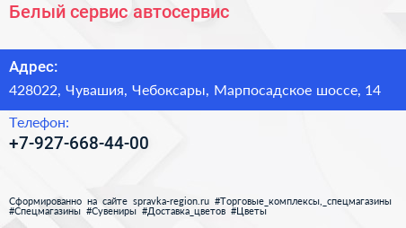 Белый сервис, автосервис по адресу 428022, Чувашия, Чебоксары, Марпосадское шоссе, 14 в дальнейшем Организация, размещена в следующих категориях: