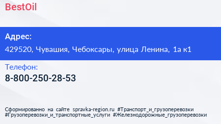 BestOil по адресу 429520, Чувашия, Чебоксары, улица Ленина, 1а к1 в дальнейшем Организация, размещена в следующих категориях: