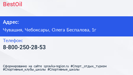 BestOil по адресу Чувашия, Чебоксары, Олега Беспалова, 1г в дальнейшем Организация, размещена в следующих категориях: