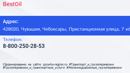 BestOil по адресу 428020, Чувашия, Чебоксары, Пристанционная улица, 7 к6 в дальнейшем Организация, размещена в следующих категориях: