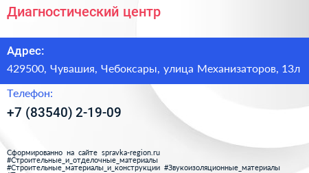 Диагностический центр по адресу 429500, Чувашия, Чебоксары, улица Механизаторов, 13л в дальнейшем Организация, размещена в следующих категориях: