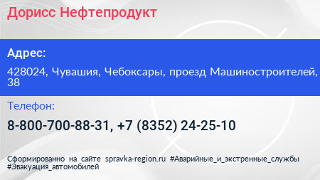 Дорисс-Нефтепродукт по адресу 428024, Чувашия, Чебоксары, проезд Машиностроителей, 38 в дальнейшем Организация, размещена в следующих категориях: