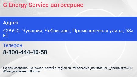 G-Energy Service, автосервис по адресу 429950, Чувашия, Чебоксары, Промышленная улица, 53а к1 в дальнейшем Организация, размещена в следующих категориях:
