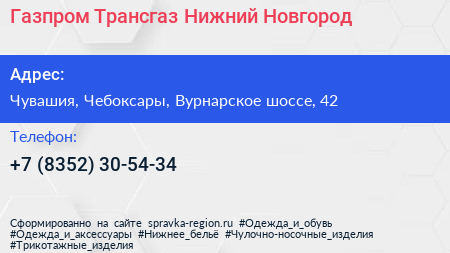 Газпром Трансгаз Нижний Новгород по адресу Чувашия, Чебоксары, Вурнарское шоссе, 42 в дальнейшем Организация, размещена в следующих категориях: