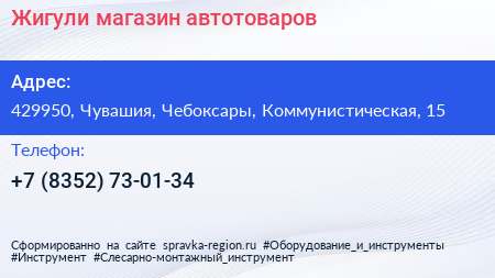 Жигули, магазин автотоваров по адресу 429950, Чувашия, Чебоксары, Коммунистическая, 15 в дальнейшем Организация, размещена в следующих категориях: