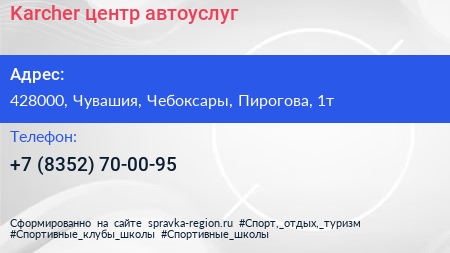 Karcher, центр автоуслуг по адресу 428000, Чувашия, Чебоксары, Пирогова, 1т в дальнейшем Организация, размещена в следующих категориях: