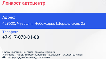 Ленкост, автоцентр по адресу 429500, Чувашия, Чебоксары, Шоршелская, 2а в дальнейшем Организация, размещена в следующих категориях: