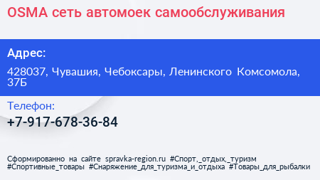 OSMA, сеть автомоек самообслуживания по адресу 428037, Чувашия, Чебоксары, Ленинского Комсомола, 37Б в дальнейшем Организация, размещена в следующих категориях:
