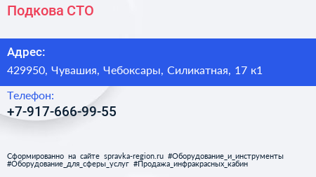 Подкова, СТО по адресу 429950, Чувашия, Чебоксары, Силикатная, 17 к1 в дальнейшем Организация, размещена в следующих категориях: