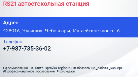 RS21, автостекольная станция по адресу 428016, Чувашия, Чебоксары, Ишлейское шоссе, 6 в дальнейшем Организация, размещена в следующих категориях: