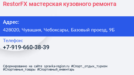 RestorFX, мастерская кузовного ремонта по адресу 428020, Чувашия, Чебоксары, Базовый проезд, 9Б в дальнейшем Организация, размещена в следующих категориях:
