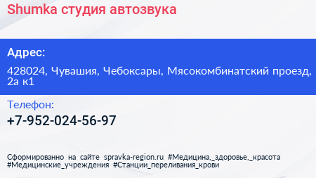 Shumka, студия автозвука по адресу 428024, Чувашия, Чебоксары, Мясокомбинатский проезд, 2а к1 в дальнейшем Организация, размещена в следующих категориях: