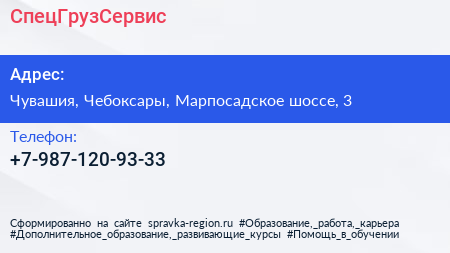 СпецГрузСервис по адресу Чувашия, Чебоксары, Марпосадское шоссе, 3 в дальнейшем Организация, размещена в следующих категориях: