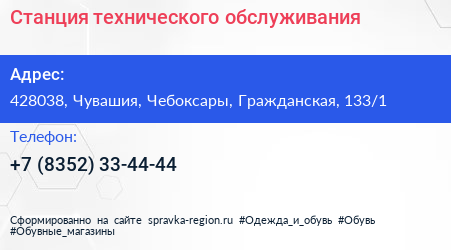 Станция технического обслуживания по адресу 428038, Чувашия, Чебоксары, Гражданская, 133/1 в дальнейшем Организация, размещена в следующих категориях: