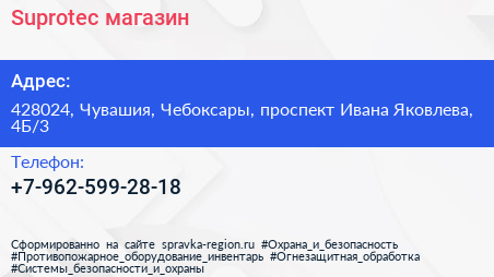 Suprotec, магазин по адресу 428024, Чувашия, Чебоксары, проспект Ивана Яковлева, 4Б/3 в дальнейшем Организация, размещена в следующих категориях: