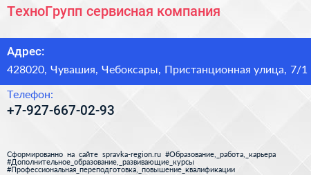ТехноГрупп, сервисная компания по адресу 428020, Чувашия, Чебоксары, Пристанционная улица, 7/1 в дальнейшем Организация, размещена в следующих категориях:
