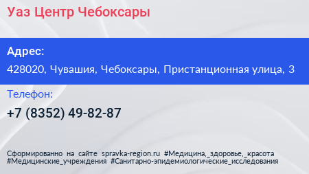 Уаз-Центр Чебоксары по адресу 428020, Чувашия, Чебоксары, Пристанционная улица, 3 в дальнейшем Организация, размещена в следующих категориях: