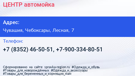 ЦЕНТР, автомойка по адресу Чувашия, Чебоксары, Лесная, 7 в дальнейшем Организация, размещена в следующих категориях: