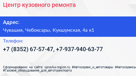 Центр кузовного ремонта по адресу Чувашия, Чебоксары, Кукшумская, 4а к1 в дальнейшем Организация, размещена в следующих категориях: