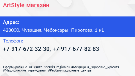 ArtStyle, магазин по адресу 428000, Чувашия, Чебоксары, Пирогова, 1 к1 в дальнейшем Организация, размещена в следующих категориях: