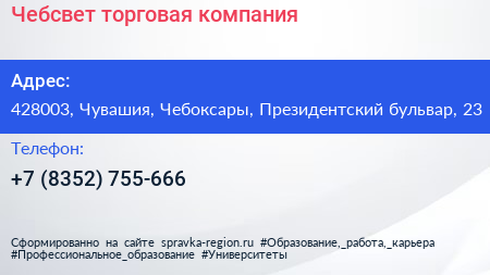 Чебсвет, торговая компания по адресу 428003, Чувашия, Чебоксары, Президентский бульвар, 23 в дальнейшем Организация, размещена в следующих категориях:
