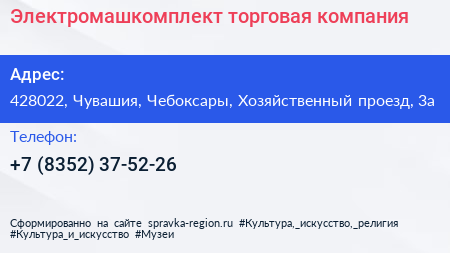 Электромашкомплект, торговая компания по адресу 428022, Чувашия, Чебоксары, Хозяйственный проезд, 3а в дальнейшем Организация, размещена в следующих категориях: