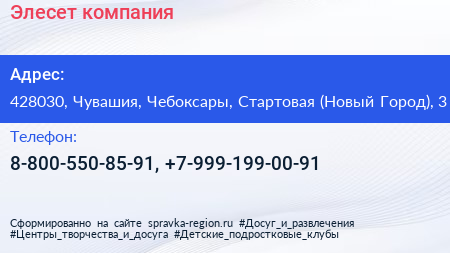 Элесет, компания по адресу 428030, Чувашия, Чебоксары, Стартовая (Новый Город), 3 в дальнейшем Организация, размещена в следующих категориях: