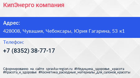 КипЭнерго, компания по адресу 428008, Чувашия, Чебоксары, Юрия Гагарина, 53 к1 в дальнейшем Организация, размещена в следующих категориях: